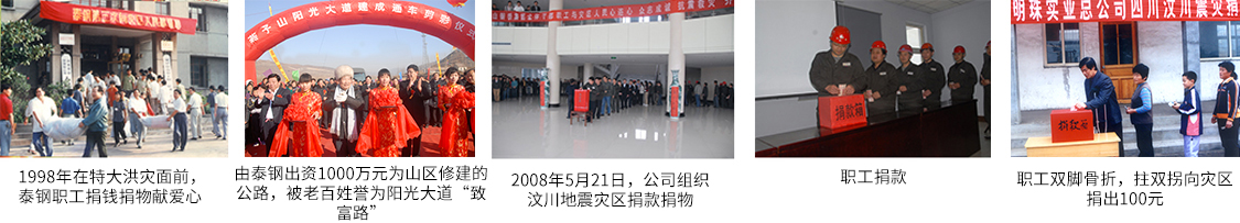 1999年3月泰山鋼鐵積極響應(yīng)全國(guó)號(hào)召向新疆貧困地區(qū)捐贈(zèng)共計(jì)5000件保暖衣物;2001年3月在市總工會(huì)發(fā)起的為患白血病女學(xué)生支斐斐捐款26600余元;同年12月又向萊蕪市社會(huì)救助工作領(lǐng)導(dǎo)小組捐助單衣3290件、棉衣3000件;2012年2月向市教育局捐助貧困生52385元;2003年1月在萊蕪抗旱救災(zāi)中捐款81930元;2004年5月在全省慈心一日活動(dòng)中捐款10萬(wàn)元;2005年1月向海嘯災(zāi)區(qū)捐款66200元,同年6月又在全市慈心一日活動(dòng)中捐款86800元;2006年11月在全市送溫暖、獻(xiàn)愛(ài)心活動(dòng)中捐款86300元;2007年4月在全市敬英雄愛(ài)心獻(xiàn)功臣、修建萊蕪戰(zhàn)役紀(jì)念館活動(dòng)中捐款18萬(wàn)元;2008年5月汶川發(fā)生強(qiáng)烈地震,泰山鋼鐵踴躍伸出之手奉獻(xiàn)愛(ài)心,支援抗震救災(zāi),累計(jì)捐款120萬(wàn)元;在2009年7月份全市慈心一日活動(dòng)中捐款164351元;2010年4月玉樹(shù)地區(qū)發(fā)生地震,泰山鋼鐵積極響應(yīng)全國(guó)號(hào)召,在第一時(shí)間向震區(qū)捐款55萬(wàn)元;在時(shí)下疫情期間捐助100萬(wàn)元物資,三次組織職工捐款……長(zhǎng)期以來(lái),泰山鋼鐵為社會(huì)慈善公益事業(yè)、各類(lèi)災(zāi)難捐款累計(jì)達(dá)1.5億元,做出了突出貢獻(xiàn),樹(shù)立了良好口碑。